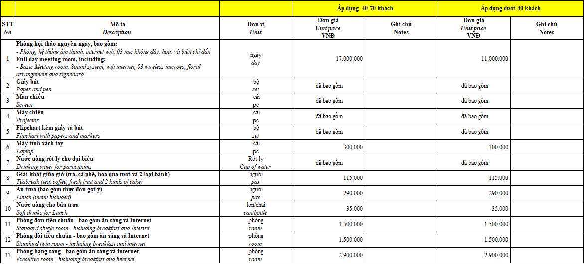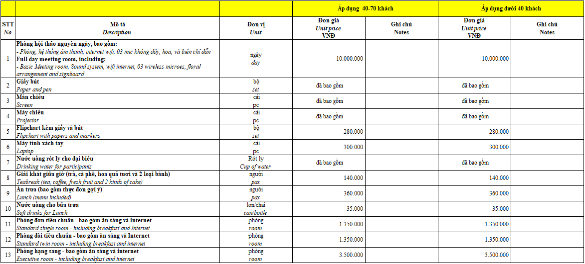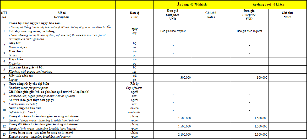 Chúng tôi gửi tới bạn bảng báo gía một số khách sạn tại Đà Nẵng . Hãy nhấc máy và gọi cho chúng tôi để có sự lựa chọn tốt nhất.