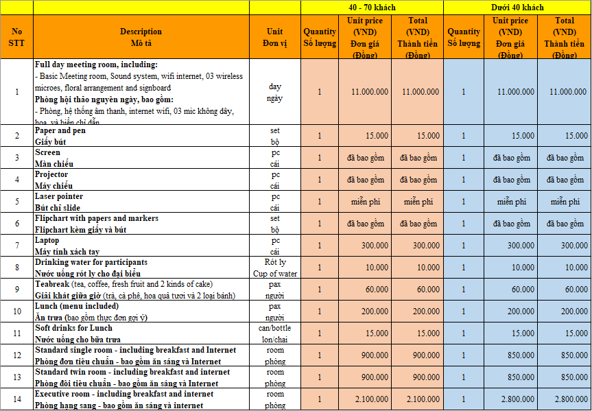 Chúng tôi gửi tới bạn bảng báo gía một số khách sạn tại Huế. Hãy nhấc máy và gọi cho chúng tôi để có sự lựa chọn tốt nhất!
