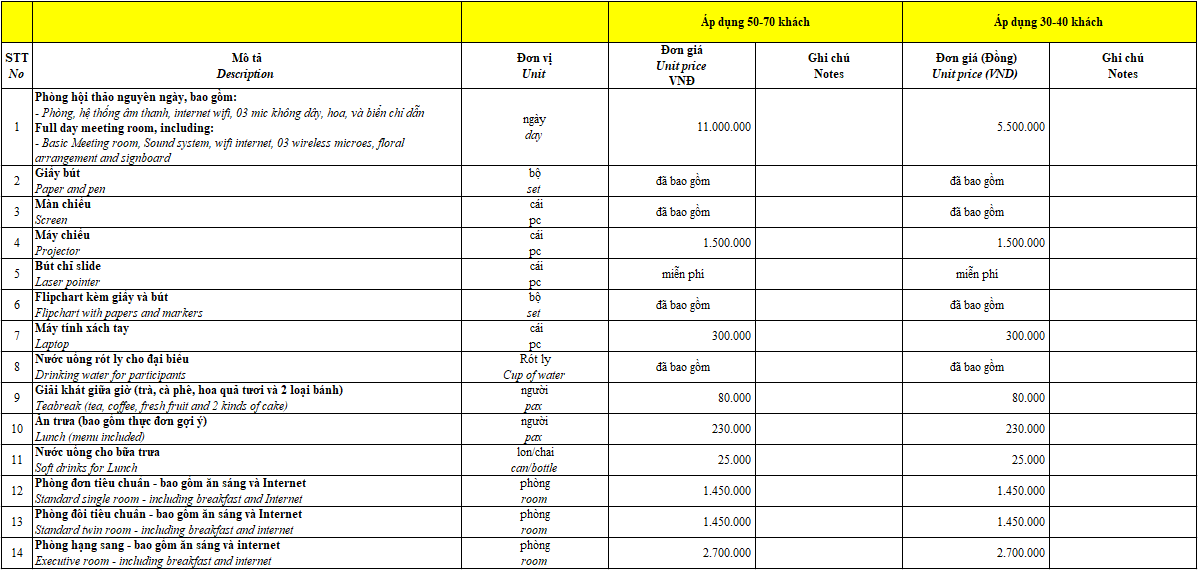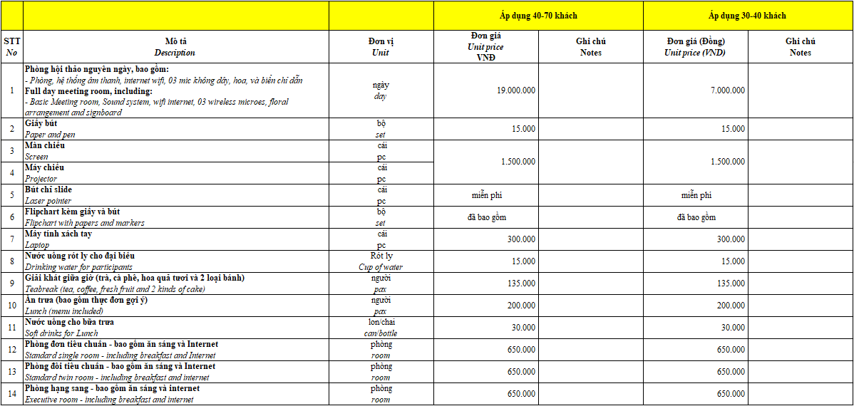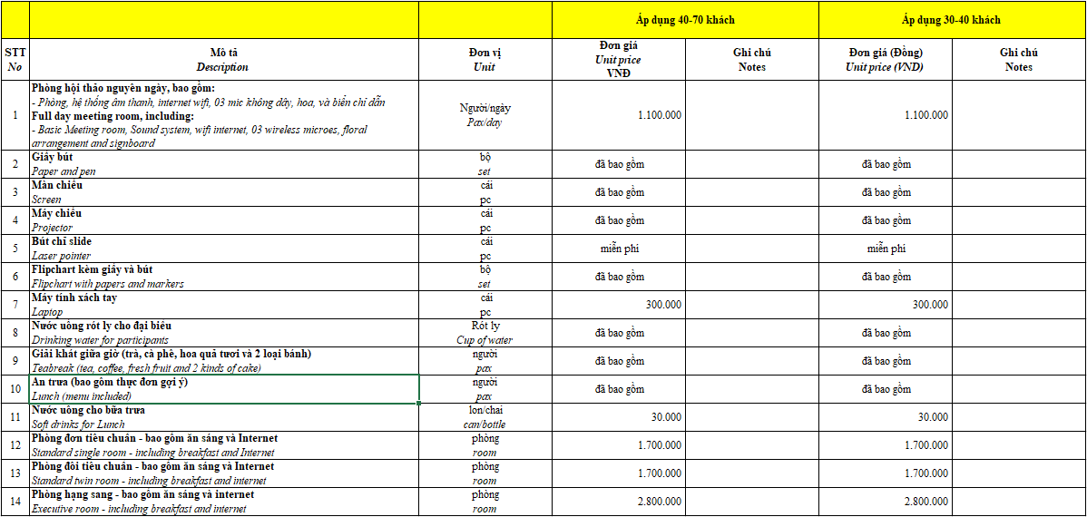 Chúng tôi gửi tới bạn bảng báo gía một số khách sạn tại Huế. Hãy nhấc máy và gọi cho chúng tôi để có sự lựa chọn tốt nhất!
