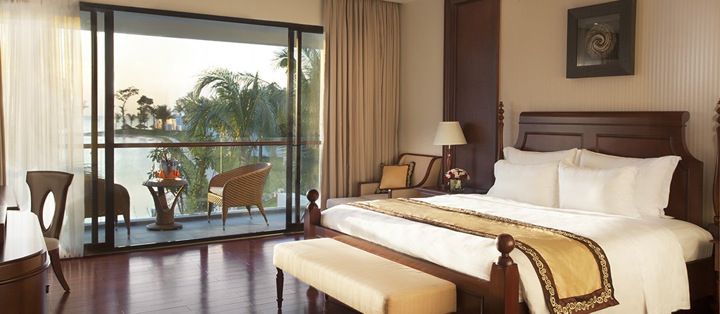 + Phòng Grand Deluxe Ocean/Garden view : Diện tích: 46 m2. Hướng biển. Phòng dành cho 2 người, Phòng có 1 giường đôi, Có thể kê thêm tối đa: 1 giường phụ.
