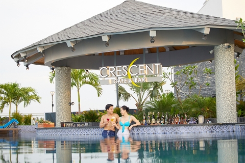 Crescent Bar tọa lạc trên tầng cao nhất của tòa nhà – tầng 22, mang đến cho bạn tầm nhìn tuyệt diệu ra đại dương bao la. Nơi đây chuyên phục vụ các loại đồ ăn nhẹ và thức uống khác nhau.