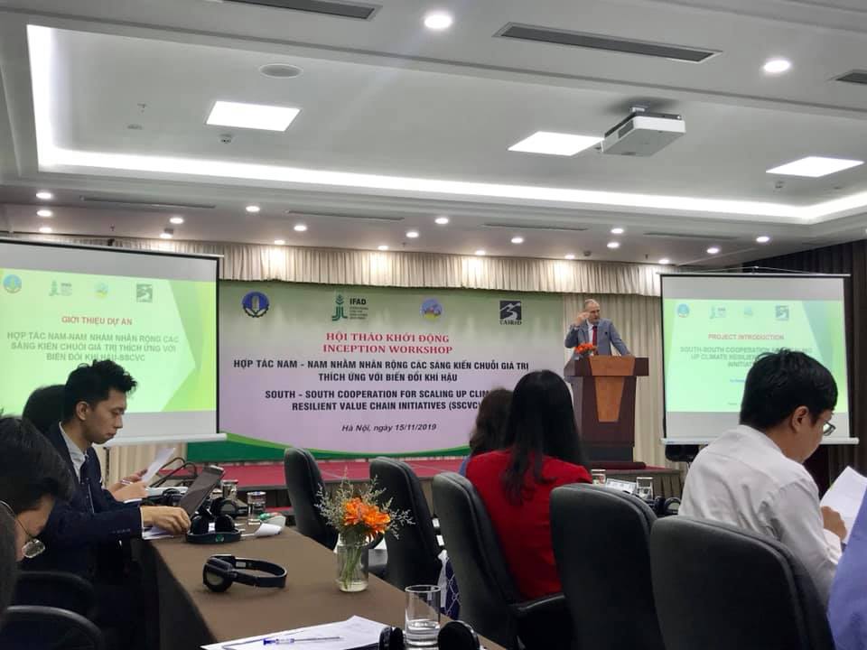 Ngày 15/11/2019, Trung tâm CASRAD tổ chức Hội thảo khởi động giới thiệu dự án Hợp tác Nam-Nam nhằm nhân rộng các sáng kiến chuỗi giá trị thích ứng với biến đổi khí hậu. Tham dự hội thảo có ngài Thomas Rath, Giám đốc IFAD tại Việt Nam, đại diện các quốc gia Lào, Campuchia, Trung Quốc và các dự án IFAD tại Việt Nam.