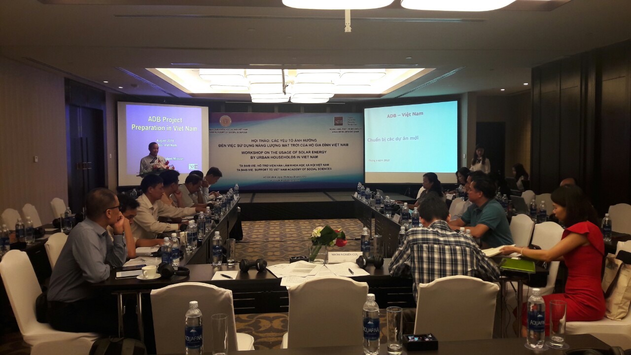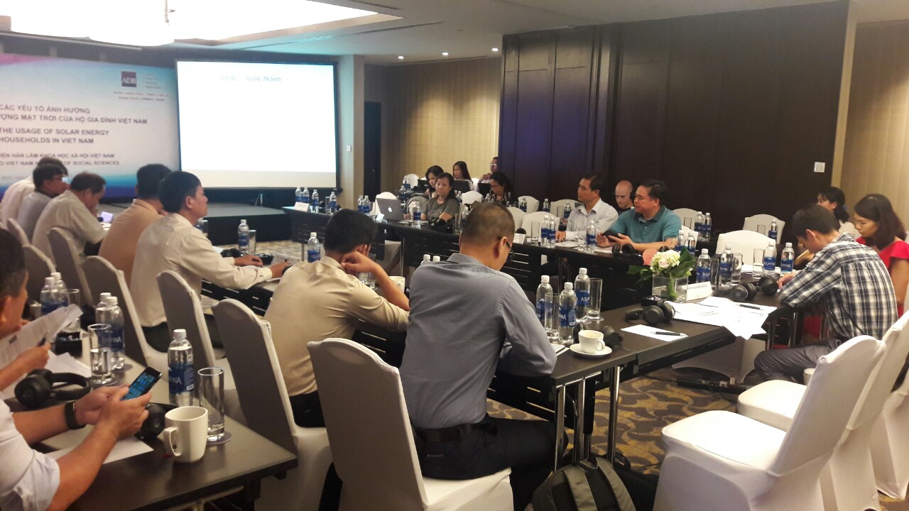 Hội thảo “Các Yếu Tố Ảnh Hưởng Đến Việc Sử Dụng Năng Lượng Mặt Trời Của Hộ Gia Đình Việt Nam” được tổ chức bởi Viện Hàn Lâm Khoa Học Xã Hội Việt Nam và Ngân Hàng Phát Triển Châu Á (ADB) tại khách sạn Sheraton Sài Gòn vào ngày 09/08/2019.