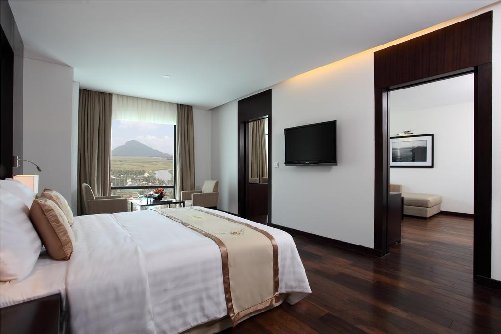 + Phòng Deluxe : Phòng có diện tích 35m2 có cửa sổ hướng nhìn ra thành phố hoặc nhìn ra cách đồng lúa, phòng được thiết kế hài hòa, tinh tế, trang bị tiện nghi hiện đại, độc đáo chắc chắn quý khách sẽ hài lòng và thoải mái khi lựa chọn một trong hai loại phòng này.