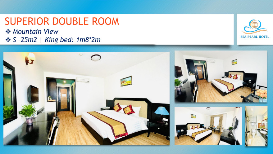 1.2. Phòng Superor Double: Căn phòng thoải mái và trang nhã với chiều rộng 25m2 có 2 loại để lựa chọn: giường đôi hoặc 2 giường đơn. Tiện nghi đầy đủ với 1 giường đôi hoặc 2 giường đơn, tivi, tủ quần áo, điều hòa nhiệt độ, phòng tắm có vòi hoa sen, máy nước nóng.