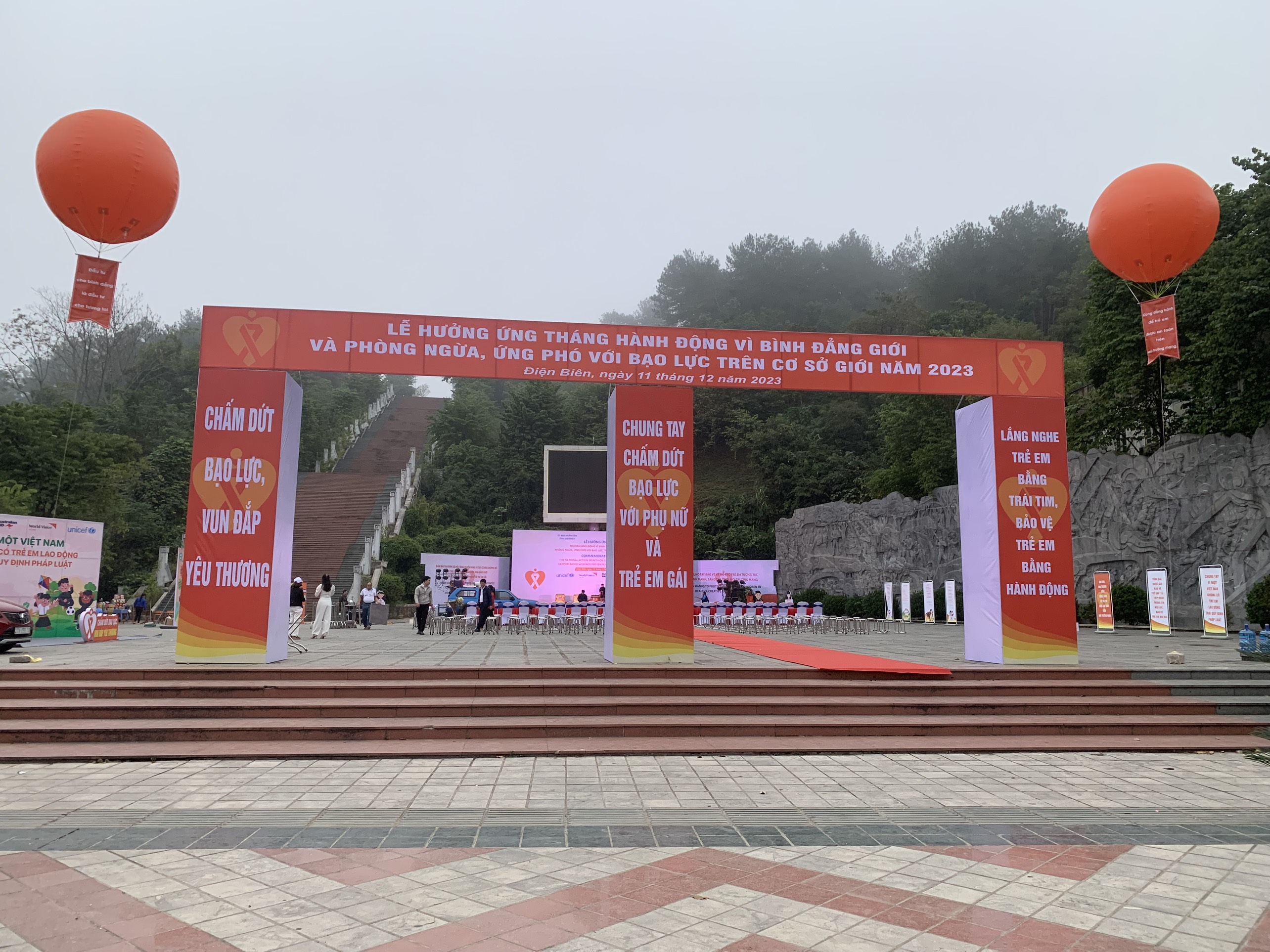 Điện Biên Phủ - sáng 11/12, tại Sân hành lễ Tượng đài Chiến thắng Điện Biên Phủ, UBND tỉnh Điện Biên phối hợp với UN Women tại Việt Nam tổ chức Lễ hưởng ứng Tháng hành động vì bình đẳng giới và phòng ngừa, ứng phó với bạo lực trên cơ sở giới, năm 2023.
