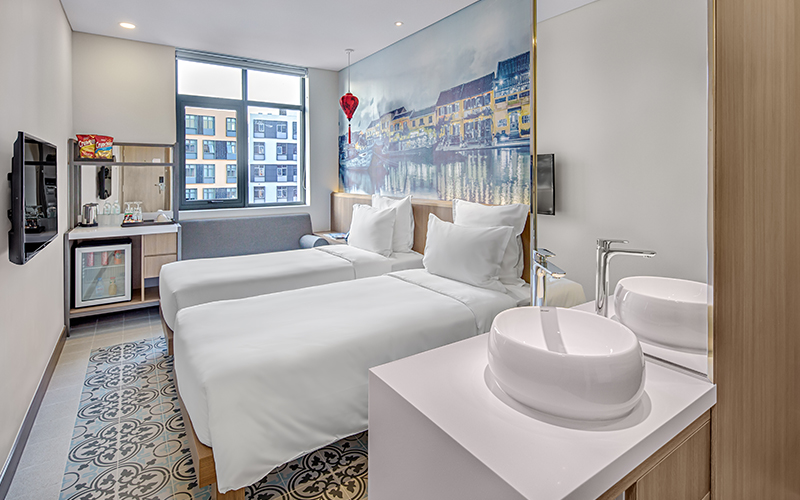 Với tổng cộng 3 khách sạn mỗi khách sạn 2 tòa, mỗi tòa bao gồm 160 căn có 10 đến 20 phòng đạt tiêu chuẩn 4 sao. Mỗi tòa đều mang những chủ đề và sắc màu khác nhau nhưng vẫn hướng chung đến phong cách tinh tế và sang trọng. Thiết kế kiến trúc và nội thất được tối ưu không gian sử dụng và tạo nên một tổng thể hài hòa và phóng khoáng. Có 2 hạng phòng bao gồm Superior và Deluxe.
